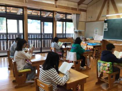 5年生は読書です。長編小説のような本を読む子もいます。静かに本の世界に浸っています。