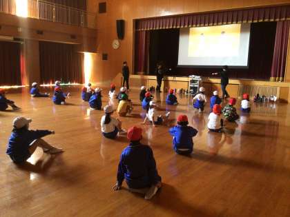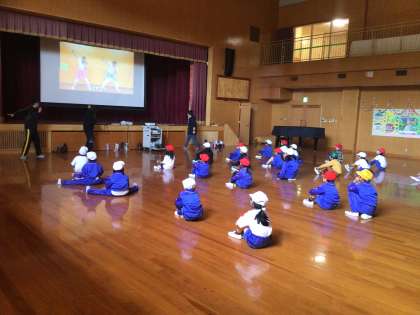 6年生がテストに取り組んでいる間、1〜3年生は運動会のダンスの練習に取り組んでいます。前のスクリーンの映像と、先生たちの見本を見ながら覚えていきます。先生たちはこの日のために時間をつくって練習を積み重ねてきました。
