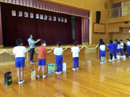 明日は1年生を迎える会を行います。4年生の子たちが、会の中の4年生の担当箇所について、リハーサルをしました。