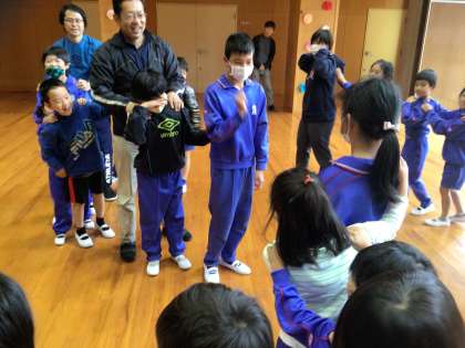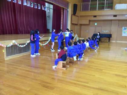 5年生の子たちがゲームを考えてくれてくれました。じゃんけん列車です。上手に実演を交えながら1年生に説明することでみんなで楽しく取り組むことができました。