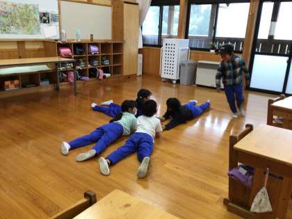3年生は、大根抜き、という室内遊びをしていました。そばでは、担任が見守っています。仲良く過ごしていますね。