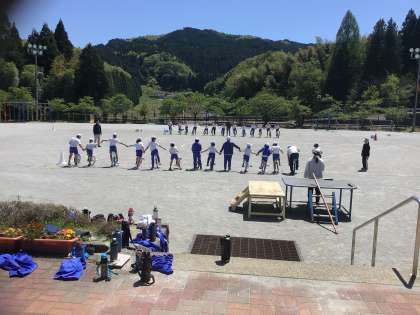 運動場では一輪車の練習です。6年生中心に声を掛け合って練習しています。「ゆっくりでいいよ!」「大丈夫?」などの声かけに優しい心遣いが感じられます。