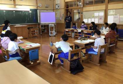 4年生の国語です。物語を読んで、考えたことを意見交流しました。クラスの子と向き合って、発言しました。友達の意見から学ぶことはたくさんあります。