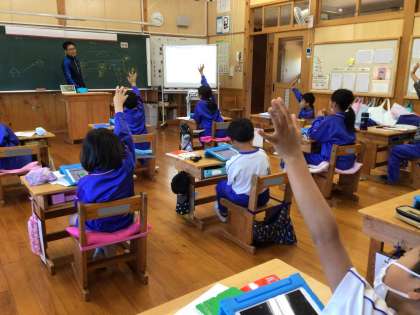 4年生は、タブレットを使って思い出を発表しました。これはだれがかいた絵でしょうか?みんな興味津々です。