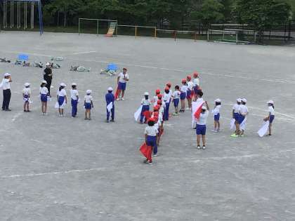 明日の運動会に向けて最後の練習です。6年生が演技の修正点を下級生に指導しています。頼もしいです。