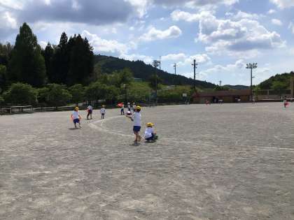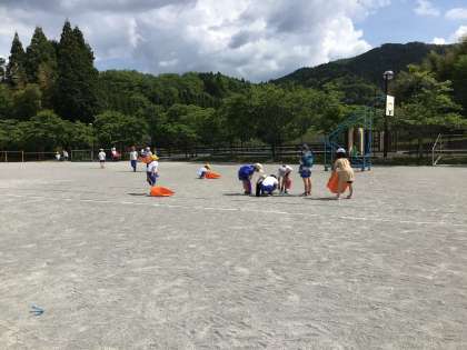 全校で協力し合って準備をしています。1〜3年生の子たちは運動場の小石拾いです。けがの防止に役立ちます。走るところを念入りにしています。