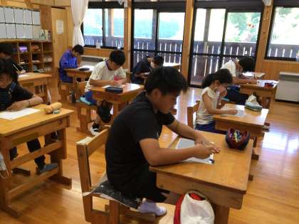 6年生の朝の様子です。漢字の学習をしていました。