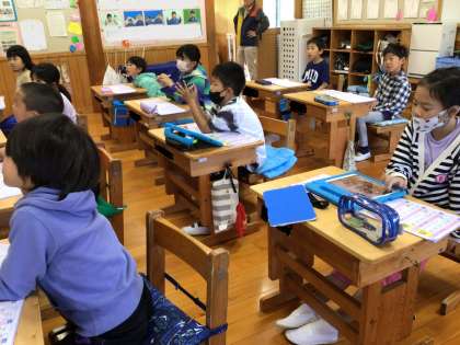 2年生の漢字学習です。新しく習う漢字は、筆順も丁寧に確認して練習します。