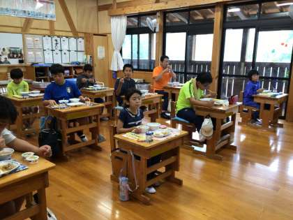 写真は、5、6年生の様子です。マナーよく会食しています。