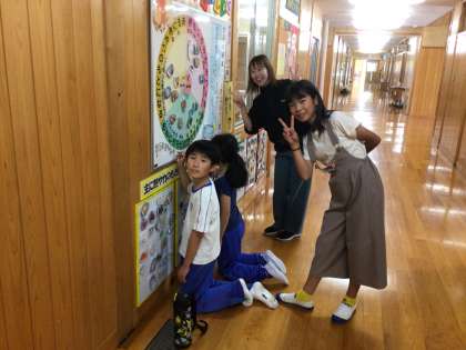 ともえタイムです。廊下を歩いていたら、高学年の子たちが委員会活動をしていました。給食の献立などを書き込んでいました。その様子を先生や友達が見つめていました。