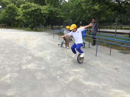 午前の放課です。サッカーをしたり、一輪車をしたりして遊んでいました。