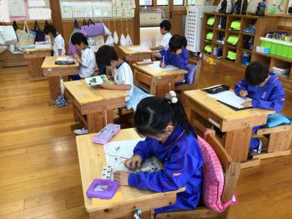 1年生の計算です。自分のペースでどんどん解いていました。4時間目の授業ですが、集中して取り組んでいました。