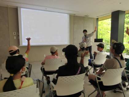 子どもたちは、朝からわくわくドキドキ。社員の方から説明を聞くと、たくさん感想を言っていました。また、見学の際にハンドタオルやメモなどもいただきました。