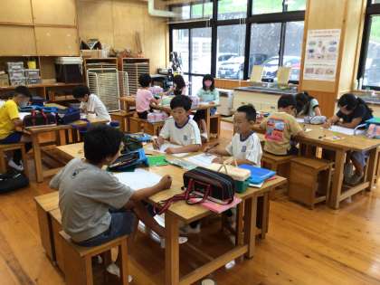 「次は家です。」先生から出されたお題をペンを使って、白い画用紙に書き込んでいました。同じお題でも、書く位置、大きさ、形など、人によって様々です。個人の想像力が描き表されていました。
