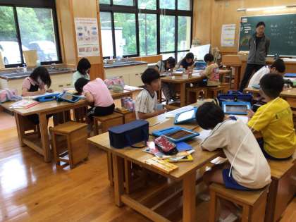 4年生の子たちが図工室で絵を描いていました。