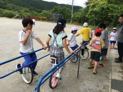 ともえタイムの運動場の様子です。午前中の長い休み時間よりも外で遊ぶ子が増えてきました。ボール投げ、一輪車、サッカーなど。学年関係なく、仲良く遊べるのが巴ケ丘小の良いところです。
