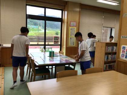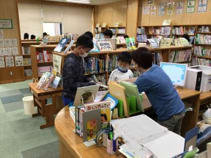 月曜日は朝、読書タイムがあります。図書室に子どもたちが来て本の貸し借りをしていました。