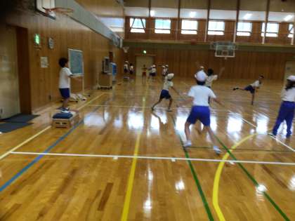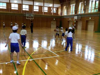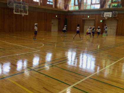 3、4年生の体育はポートボールに取り組んでいました。どの子も夢中になってボールを追いかける姿が見られました。