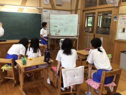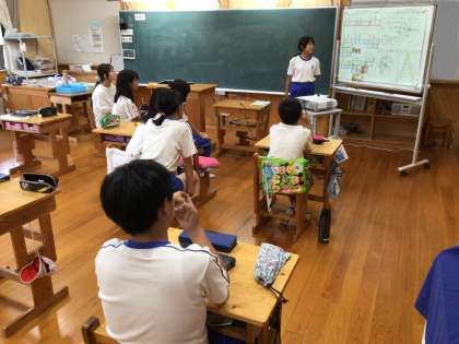 5年生は稲作について調べ、タブレットや模造紙に書いてまとめました。今日はその発表です。みんなの前でしっかり話し、それをしっかりと聞く。学び合うクラスです。