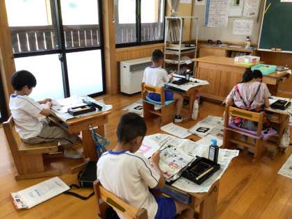 3年生の子たちが、4時間めに習字の練習をしていました。