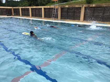 今日は25メートル泳ぐ練習でした。息継ぎをしながらがんばって泳いでいました。