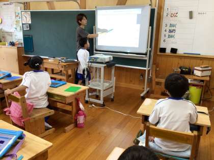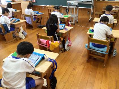 その後先生は、提出された発表ノートに花丸のスタンプをつけて、子どもたちに返却しました。