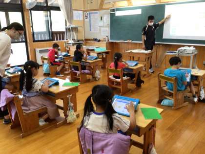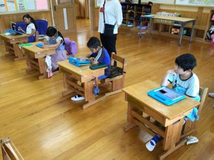 子どもたちは、ドラッグ&ドロップ等の操作で、入力した文字を回転させたり拡大縮小したりしました。
