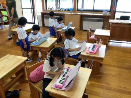 「わたしもやろっと。」音色にひかれて練習する子が増えてきました。