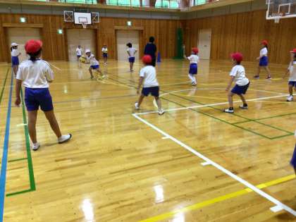 そこで、体育館に行きドッジボールをしました。子どもたちは機敏に動いていました。