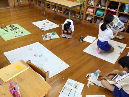 米の品種、古代米、棚田や、お米に関わる戦いなど、幅広く、子どもの興味関心を大切にして課題を設定していました。調べ方やまとめ方も、タブレットや図書室で調べたり、データで書き込んだり、模造紙に手書きをしたり。自分で意思決定をして進めていました。