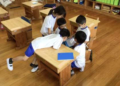 1年生の子たちは、ともえタイムにタブレットを見ていました。