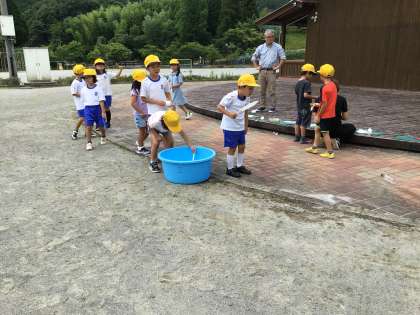 うちわ、ハエたたき、ザル、洗剤の空き容器などいろいろな道具で作りました。
