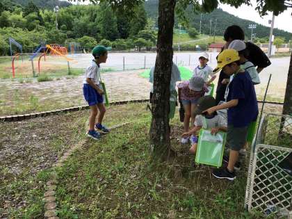 「セミいないかなあ。」木の幹に集まりました。