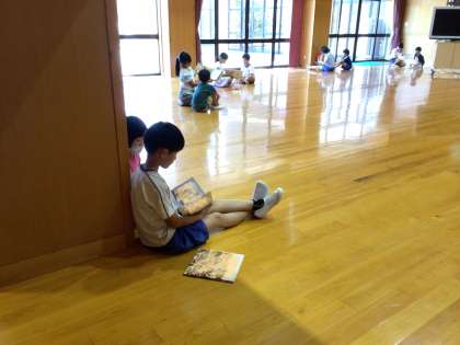 お昼にペア読書をしました。4、5、6年生の子が、1、2、3年生の子に本を読んであげました。
