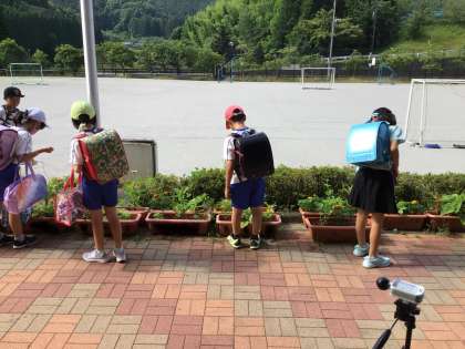 今日も朝から暑く感じます。昨日は、暑さ指数(WBGT)が高かったため、熱中症予防として、お昼休みは外遊びをやめて校舎内で過ごしました。現在の暑さ指数は28.0度で、高くなっています。こまめに水分や休憩をとるなどして気をつけていきたいと思います。