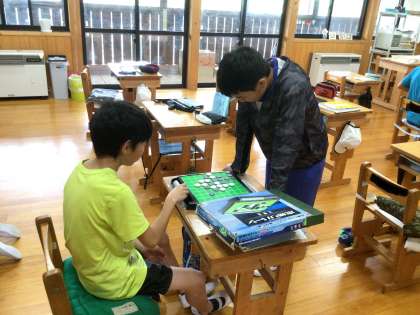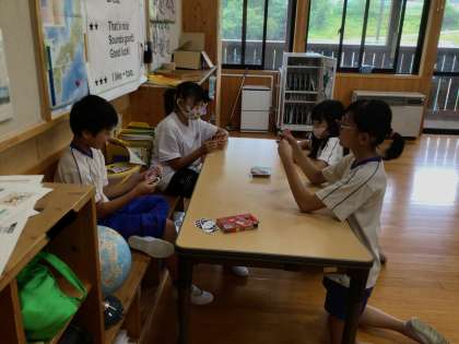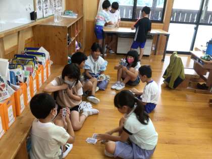 雨降りの放課、教室でおもいおもいに楽しんでいます。