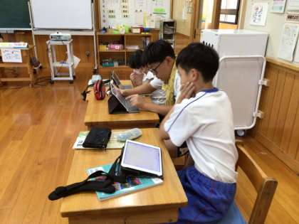 6年生が、理科の学習で、タブレットを使っていました。