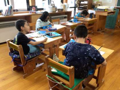 家での食事のことや、プールに行ったこと、親戚の家に行ったことなど、思い思いにかきました。