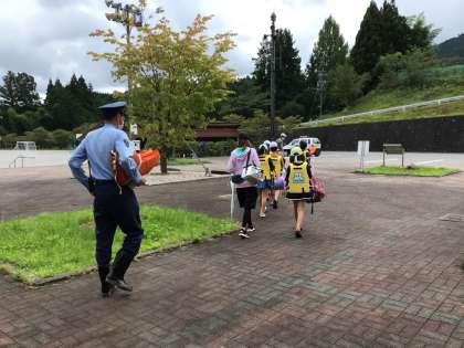 今日は、見守りボランティアとして駐在さんが様子を見に来てくださいました。ありがとうございます。