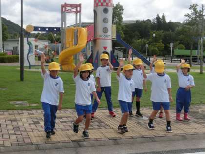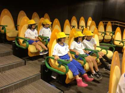 交通安全学習センターでは、まず交通安全について早押しクイズの形式で学習しました。1位から3位まですべて巴ケ丘の子がとりました!