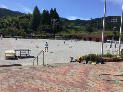グラウンドでは5、6年生が体育でハードル走に取り組んでいます。もう何回か授業をしているので、飛び方もかなり様になってきました。