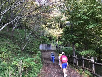 日に日にアジサイ坂の木々が色付いています。秋晴れの気持ちの良い朝を迎えました。