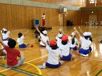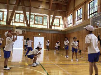 黄色のボールを貸してもらって、投げてキャッチをしました。