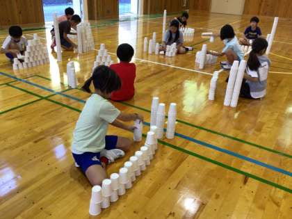 一人200個の紙コップでスタートです。