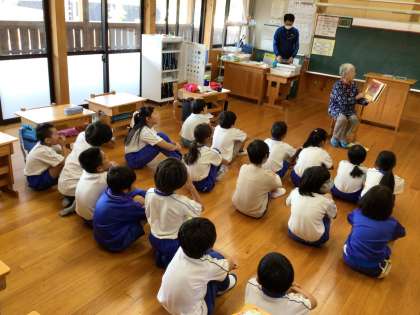 低学年は、お月様のお話でした。先日、美しい中秋の名月が見られたので、それに関連してくださったのでしょう。季節に合ったお話を、興味深く聞いていました。