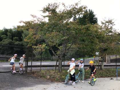 一輪車や、遊具、草花摘みなどをして遊びました。楽しいですね。