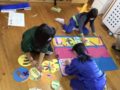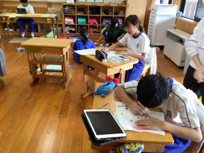 5年生がしもやまスマイルフェスタに向けて準備をしていました。