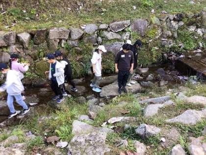 自由な時間は、みんな川で遊ぶことに夢中です。でも誰に言われなくても5分前には集合できています。素晴らしいです。