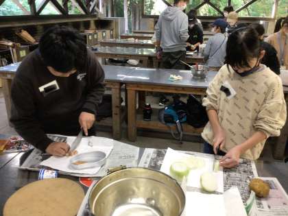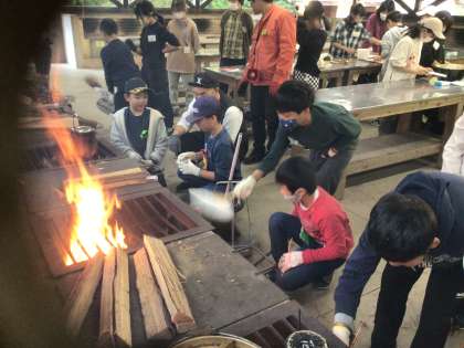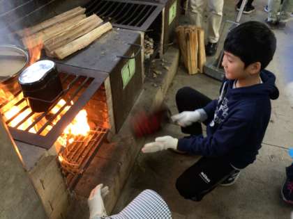 いよいよかまどに火をつけます。手際がいいです。