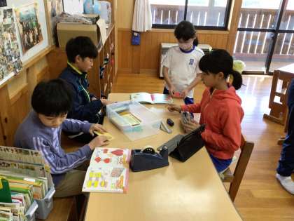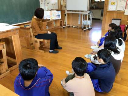 2枚目の写真は、6年生です。ちょうど読み聞かせが終わってしまいました。6年生の子たちは、集まって折り紙を仲良く折ったり、読書をしたりして過ごしました。
